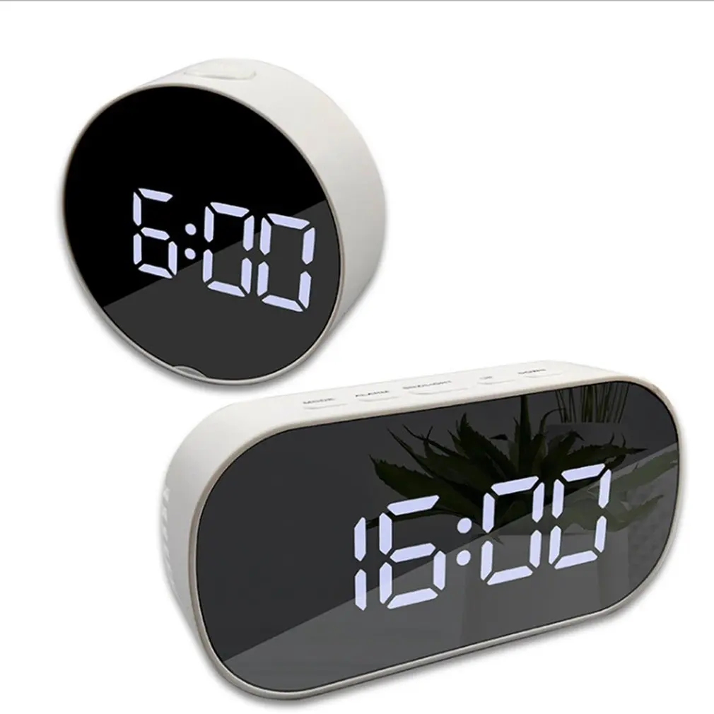 Цифровой будильник, светодиодные зеркальные настольные часы с изогнутой поверхностью, большой экран, настольные часы для украшения дома