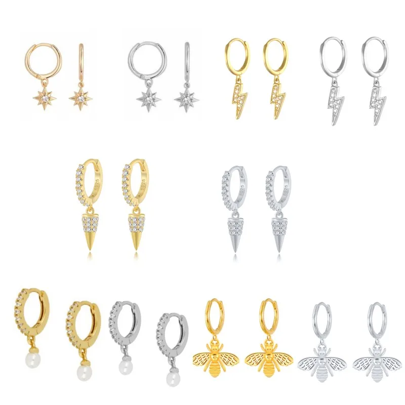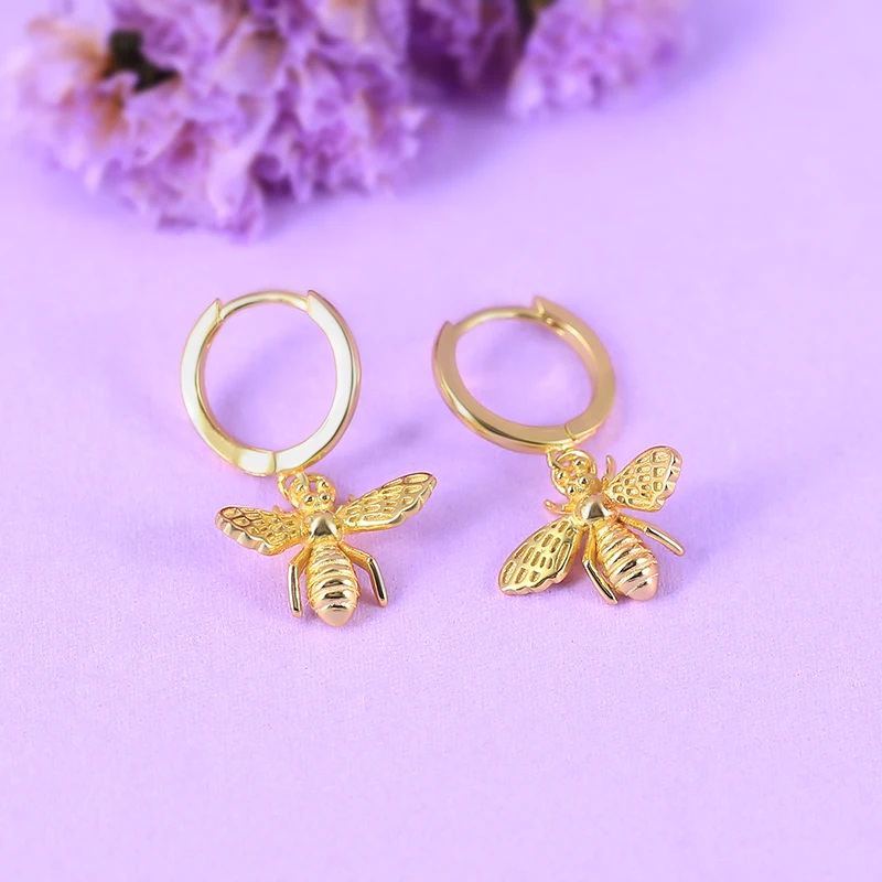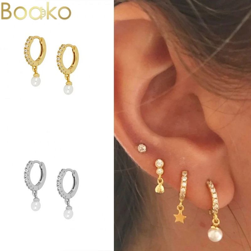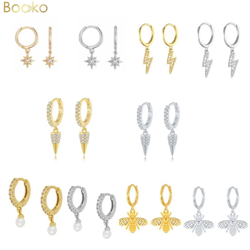 Женские сережки-кольца BOAKO, сережки-кольца с серебряным покрытием из пчелы/жемчуга/молнии, круглые серьги из циркона, 18 К