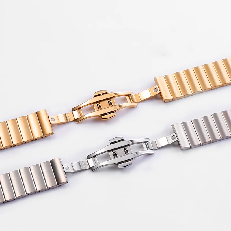 Характеристика:Высококачественная нержавеющая сталь 316L, полированная несколькими шагами и окрашенная вакуумным покрытием. Следовательно, она более износостойкая и коррозионная, и никогда не будет ржаветь.Элегантный металлический ремешок из нержавеющей сталиИзысканная двойная складная застежка, легко надевается/снимается, безопасная и моднаяКлассическая версия чувствует себя комфортно на вашем запястье. Премиум металл из нержавеющей стали имеет роскошь, благородство, элегантность и долговечностьДлина ремешка: 175 ммПолоса пропускания: 22 ммПряжка для часов: металлическая пряжкаРазмер: подходит для окружности запястья: 145-200 ммПосылка:1x Ремешок для часов из нержавеющей стали (часы не входят в комплект)