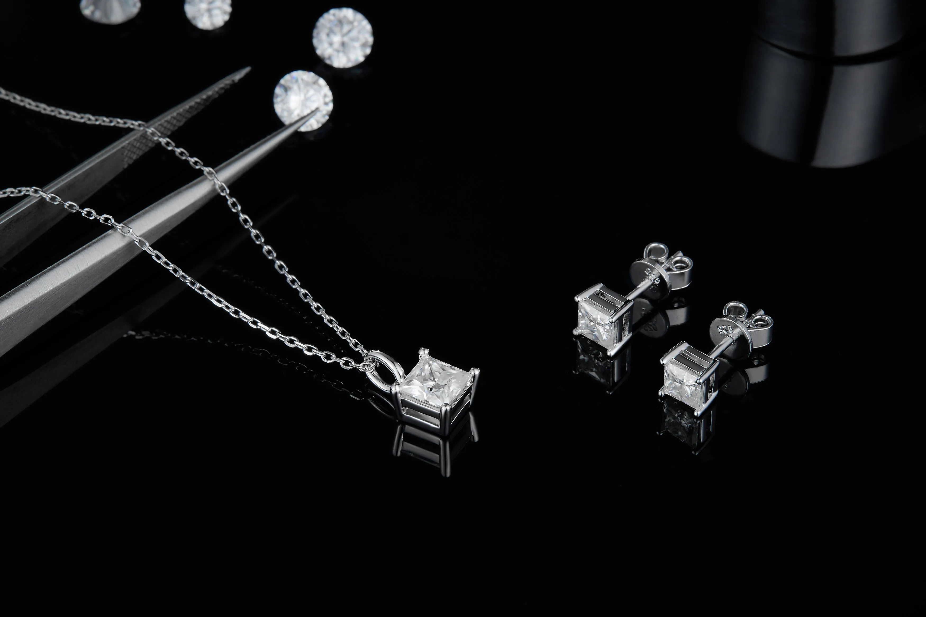 Комплект ювелирных изделий из серебра 925 пробы, с муассанитом