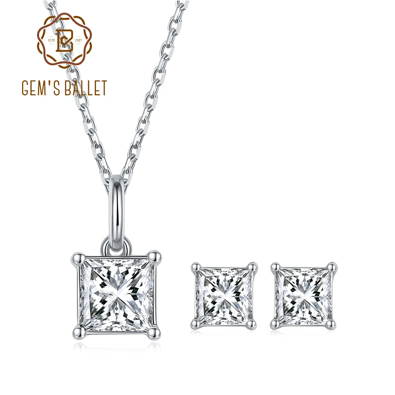 Комплект сережек для женщин GEM'S BALLET Moissanite, ожерелье с под...