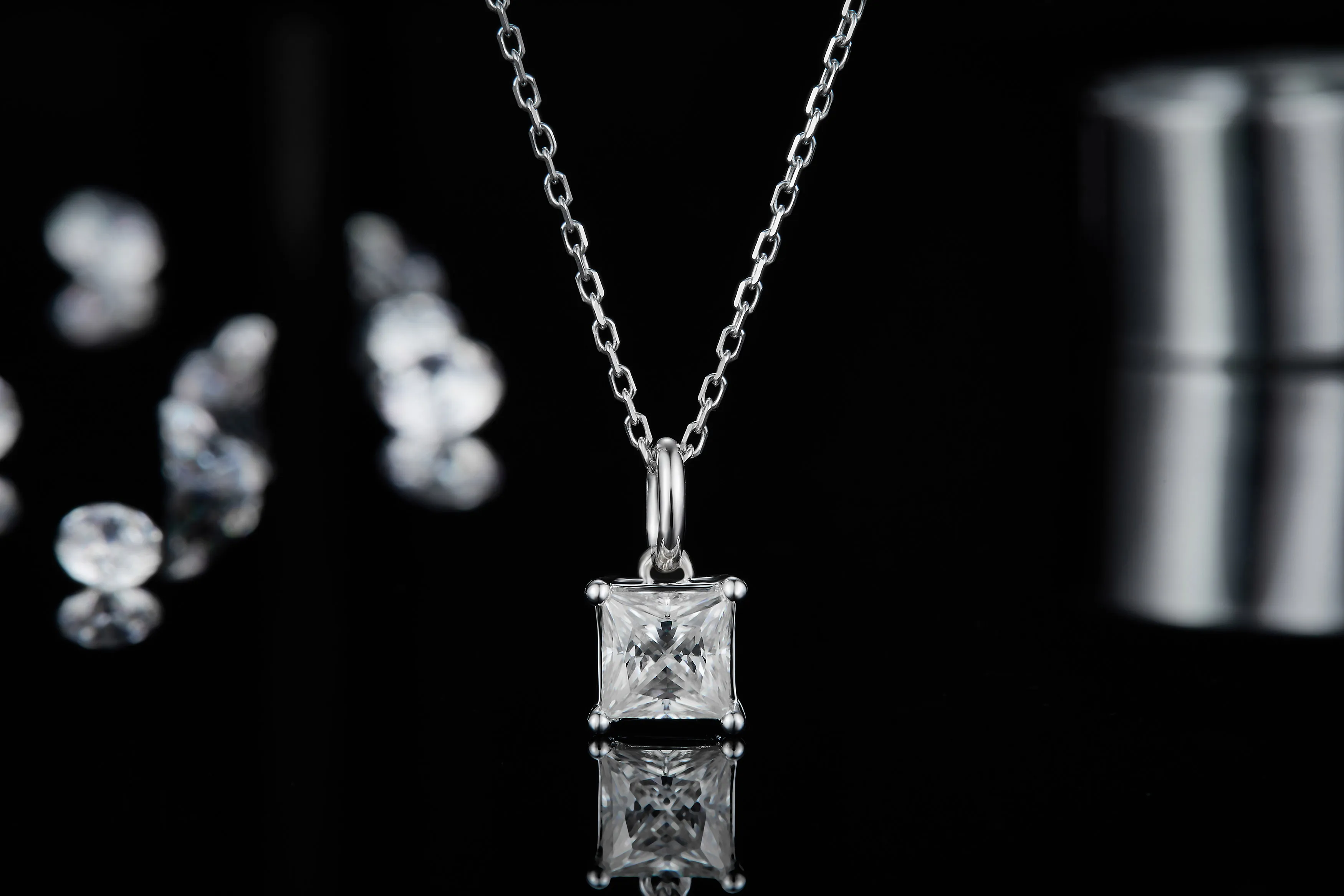Женский прямоугольный кулон из серебра 925 пробы, с муассанитом 5 мм