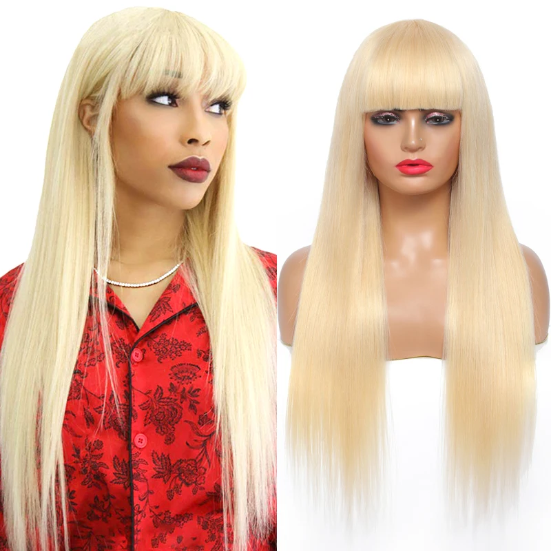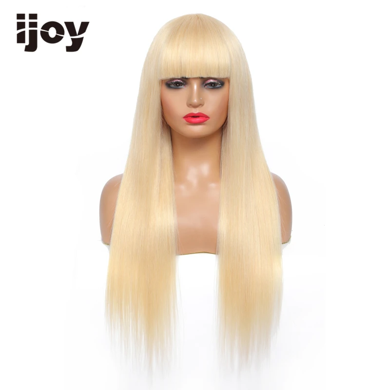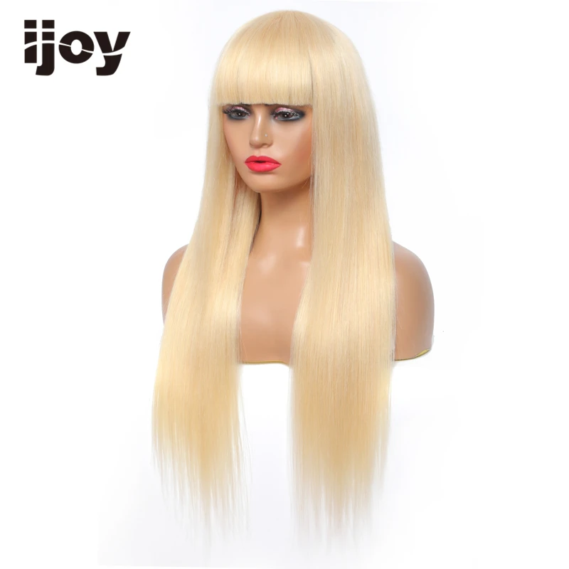 Парик из натуральных волос с челкой, прямые волосы, окрашенные, 613 светлые бразильские волосы, полный парик для чернокожих женщин, не Реми IJOY