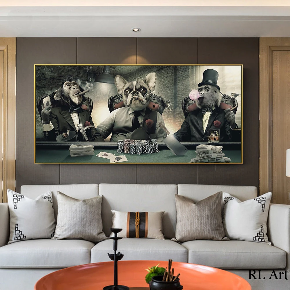 Animal art PaintingMonkey and dog at the gaming table Painting