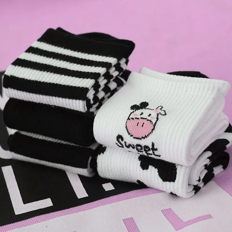 Носки в полоску с забавным принтом коровы; Белые Носки с рисунком; Удобные носки в стиле Харадзюку; skarpetki damskie; Милые носки с животными; chaussettes kawaii happy socks