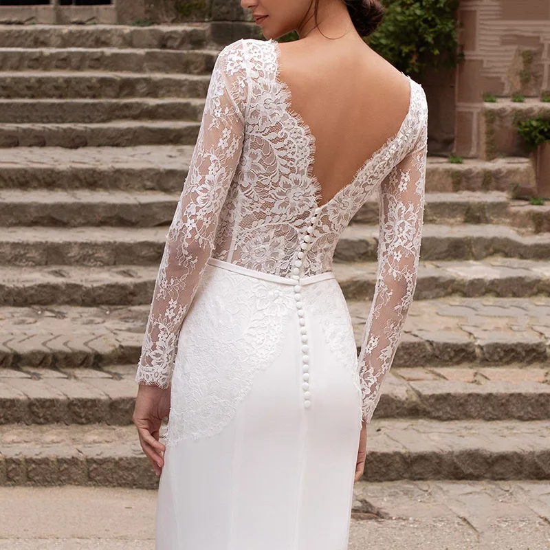 Женское атласное платье с юбкой годе, сексуальное кружевное платье с длинным шлейфом и открытой спиной, с длинным рукавом и аппликацией, 2021