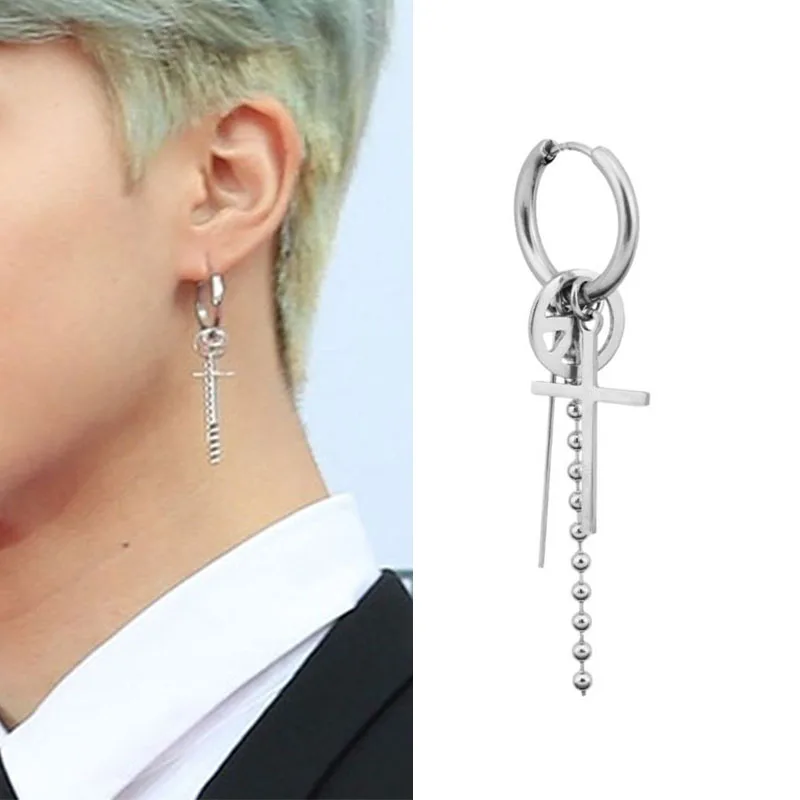 Длинные серьги-кисточки с крестом для мужчин, кольца из нержавеющей...