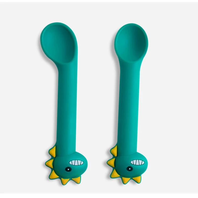 Детская силиконовая обеденная тарелка с рисунком динозавра, присоска, тарелка, миска, Детская сетка, столовая посуда для кормления, набор ложек и вилок для тренировок
