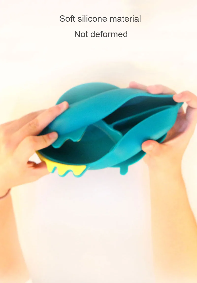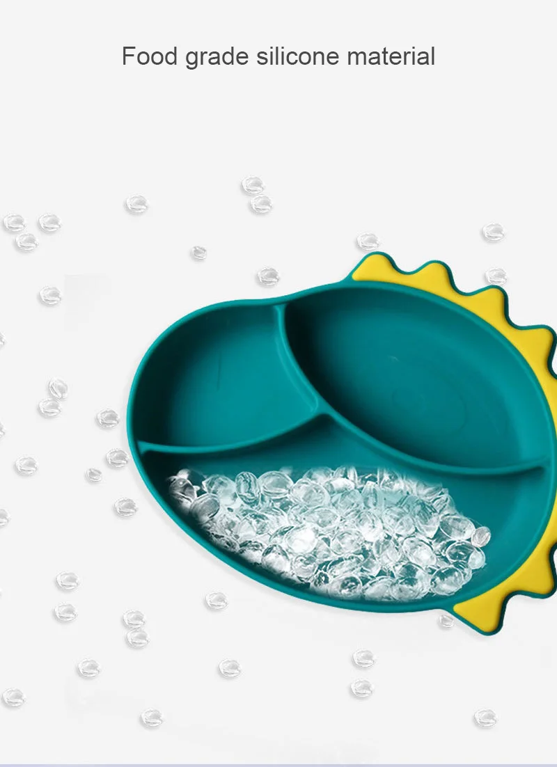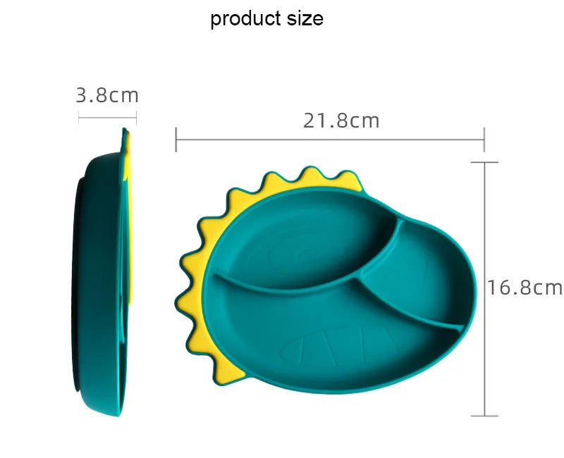 Детская силиконовая тарелка для кормления с мультипликационным дино...