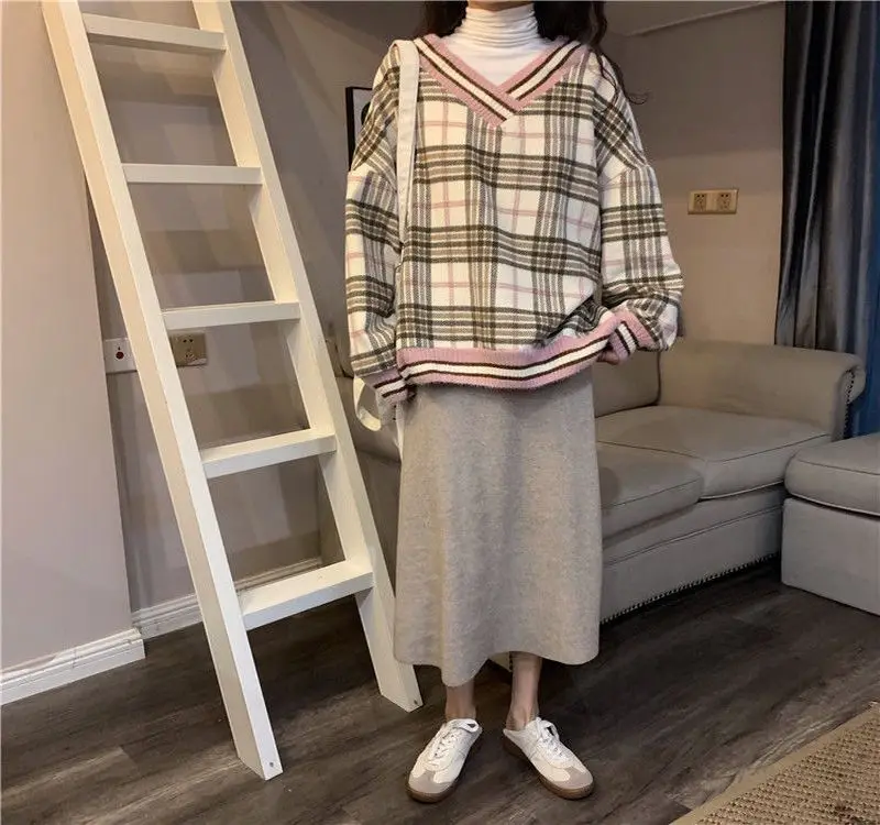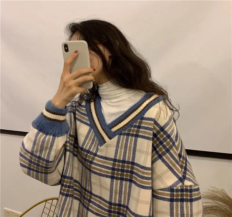 Весенне-осенняя футболка в гонконгском стиле ретро, свободная толстая футболка с V-образным вырезом и длинными рукавами, женские корейские Топы в стиле Харадзюку
