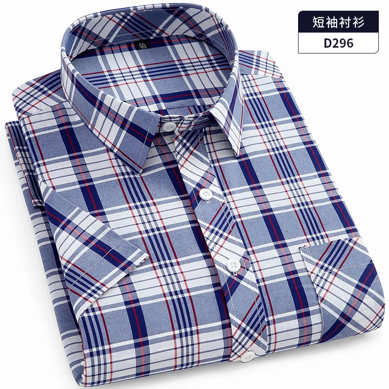 Рубашка мужская в клетку, классическая сорочка с короткими рукавами...