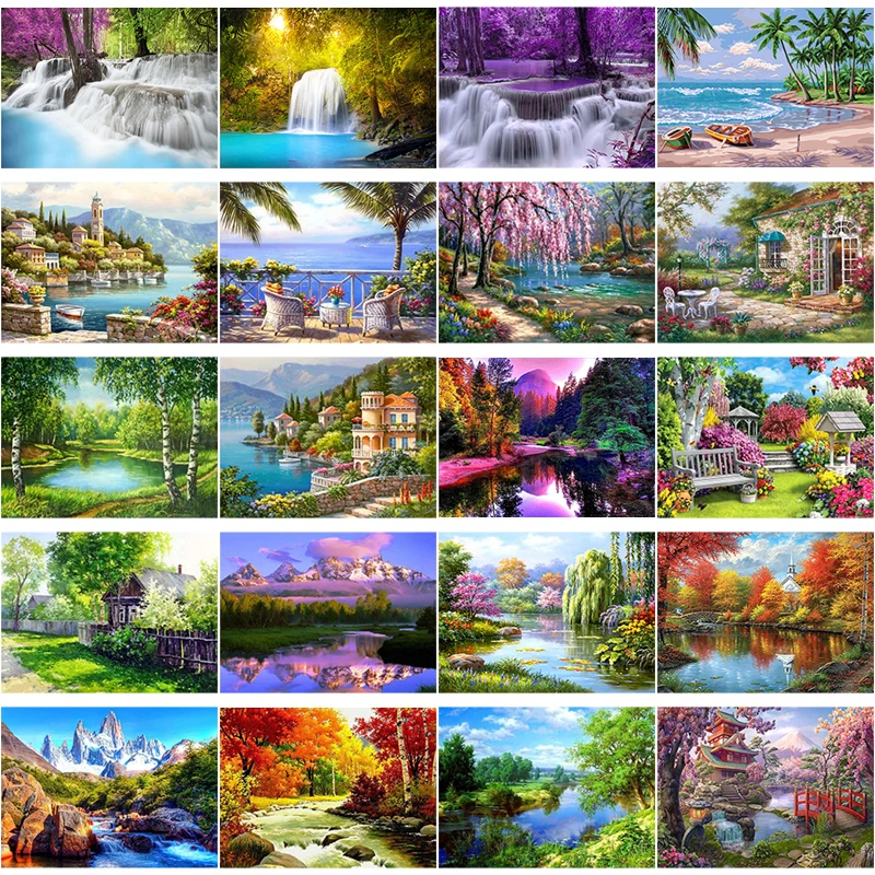 Алмазная живопись сделай сам, вышивка крестиком с природным ландшаф...