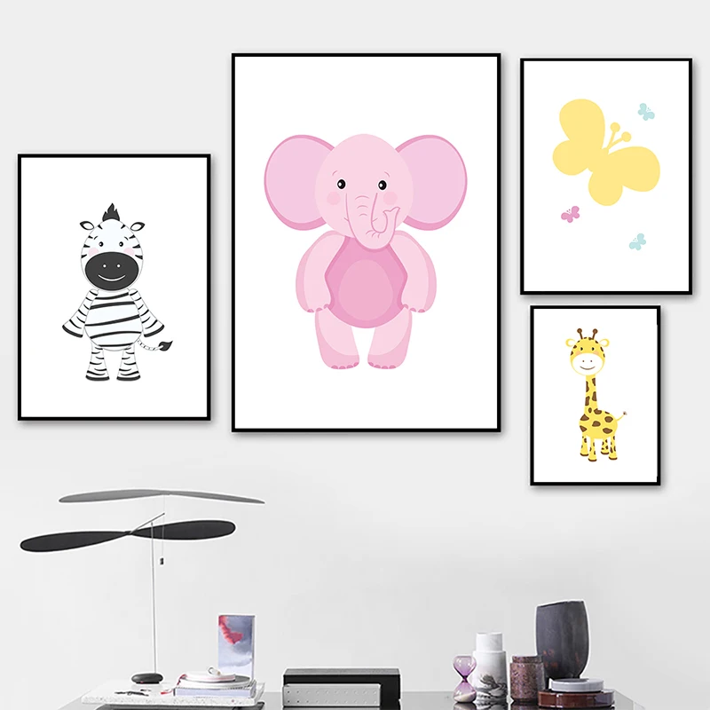 Мультфильм Животные Скандинавская Картина на холсте льва, слона, пл...