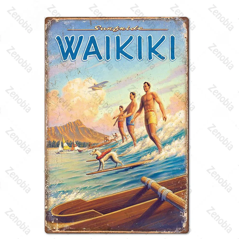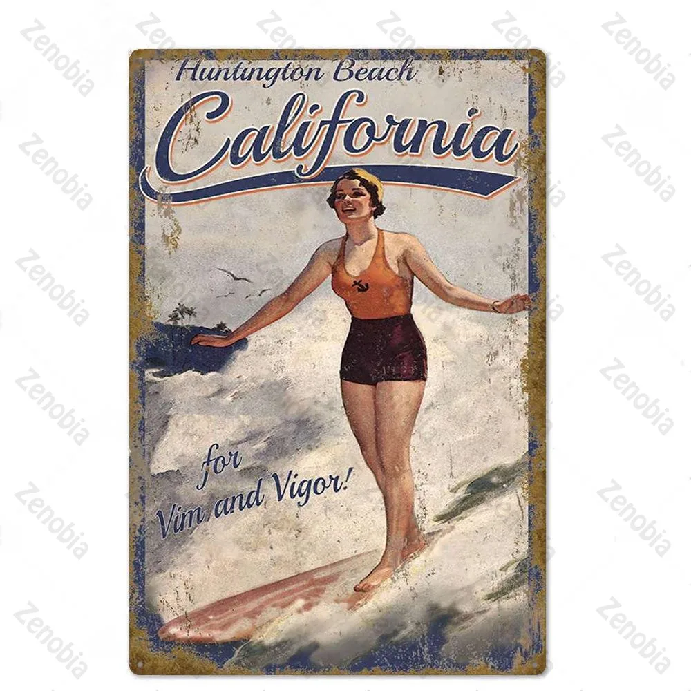 Летняя Пляжная Оловянная табличка с рисунком, металлическая пластин...