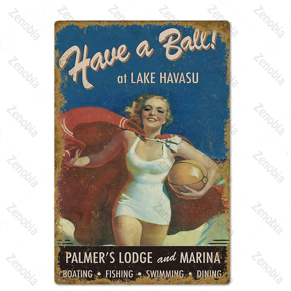 Винтажный металлический жестяной знак, обнаженные сексуальные посте...