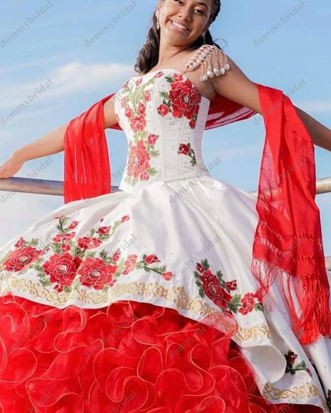 Красивое красно-белое платье 15 лет, мексиканское 2022, недорогие платья Quinceanera Sweet 15 с кристаллами и цветочной вышивкой