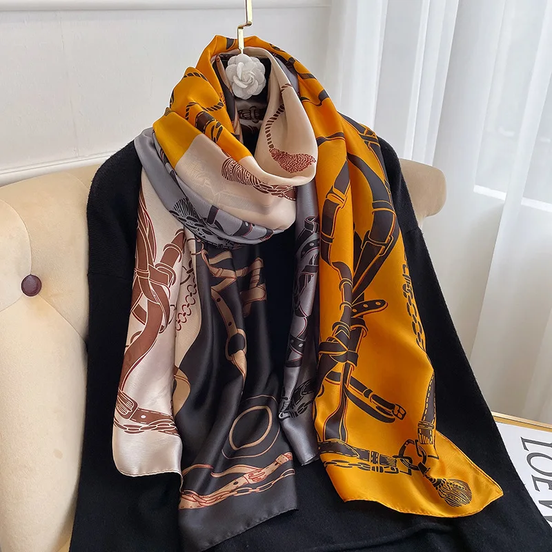 2022 модный Шелковый шарф x 90 см новый пляжный хиджаб с буквенным принтом женские солнцезащитные Шали и палантины женская дизайнерская бандана