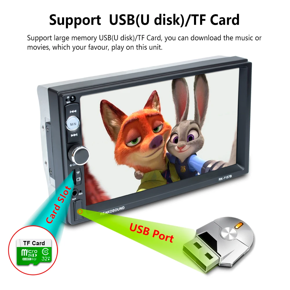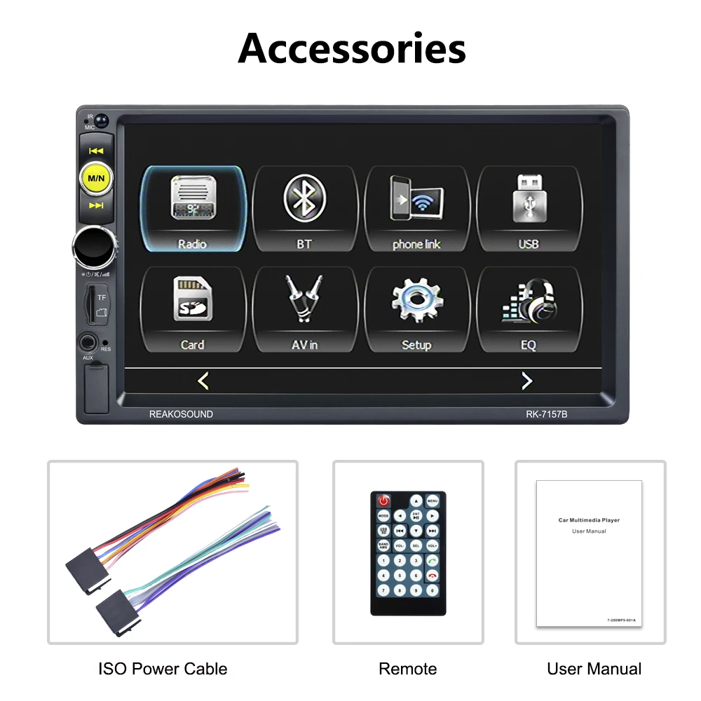 Автомобильный видеоплеер 2 DIN, HD-экран 7 дюймов, MP5, Bluetooth, поддержка TF-карты, USB, AUX, RDS, с камерой заднего вида и управлением рулевым колесом