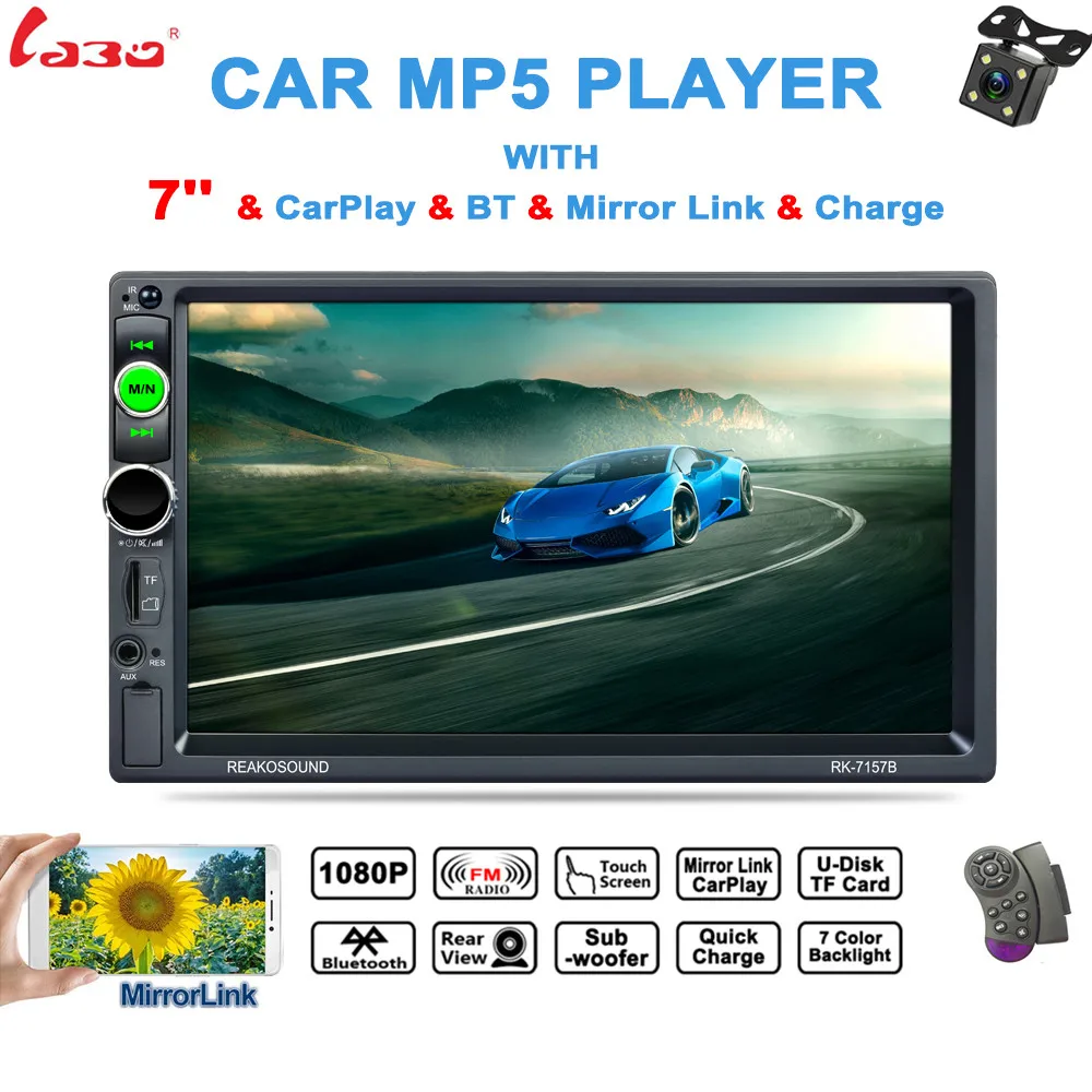 2 DIN 7 "HD экран Автомобильный MP5 Bluetooth Видеоплеер поддержка TF карта USB AUX RDS с камерой заднего вида и управлением рулевым колесом