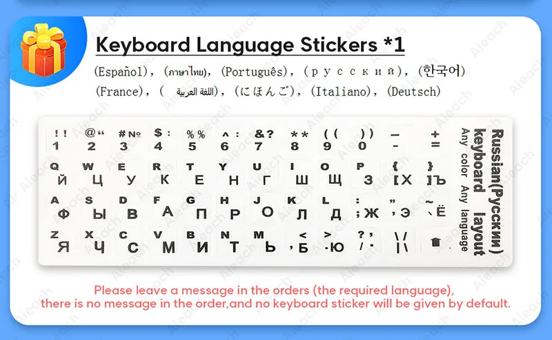 Однако обычная клавиатура доступна только на английском языке. При использовании разных способов ввода языка буквы на клавиатуре отличаются. Это вызывает у вас трудности? Не волнуйтесь, мы предлагаем наклейки на клавиатуру на нескольких языках, чтобы решить ваши проблемы с набором текста!