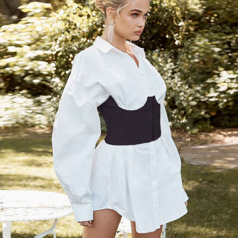Женская мода широкий пояс-корсет Женские Эластичные зауженные туфли; Облегающее платье элегантный женский рубашка с поясом платье Accesoories