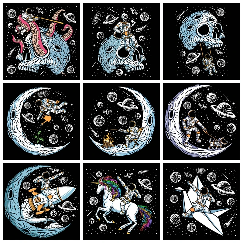 DIY Луна астронавт утюгом патчи для одежды теплопередача Винил Муль...