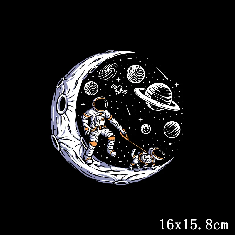 Железная переводная нашивка с космонавтом, луна, аппликация, теплопередача, винил, космические наклейки, Детские полоски на одежде, термопресс
