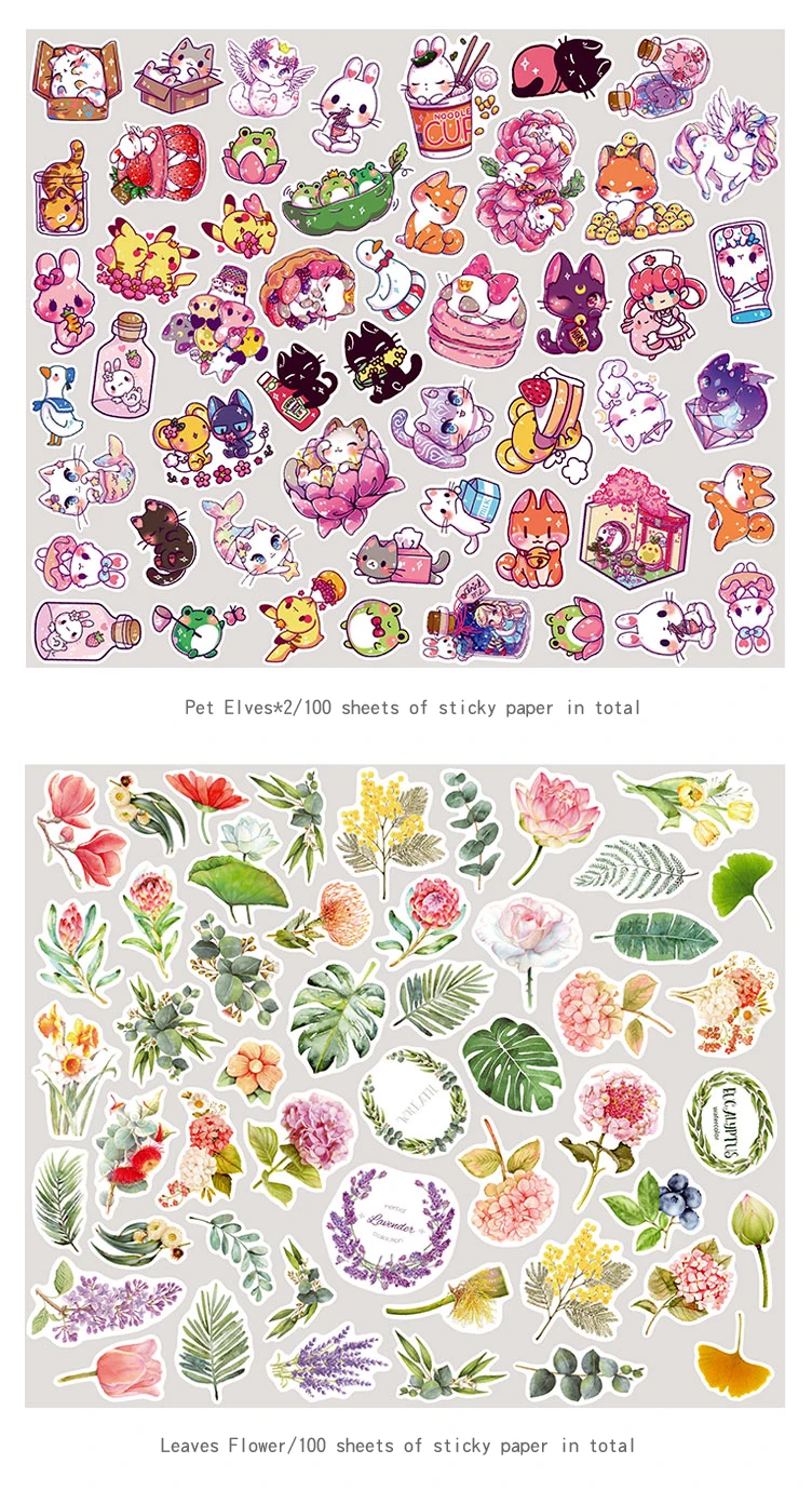 100 шт. Kawaii карманный дневник Набор наклеек мини для собак и кот...