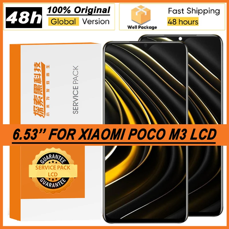100% Оригинальный 6,53 "IPS дисплей с рамкой для XiaoMi POCO M3 M2010J19CG ЖК-сенсорный экран дигитайзер в сборе запасные части