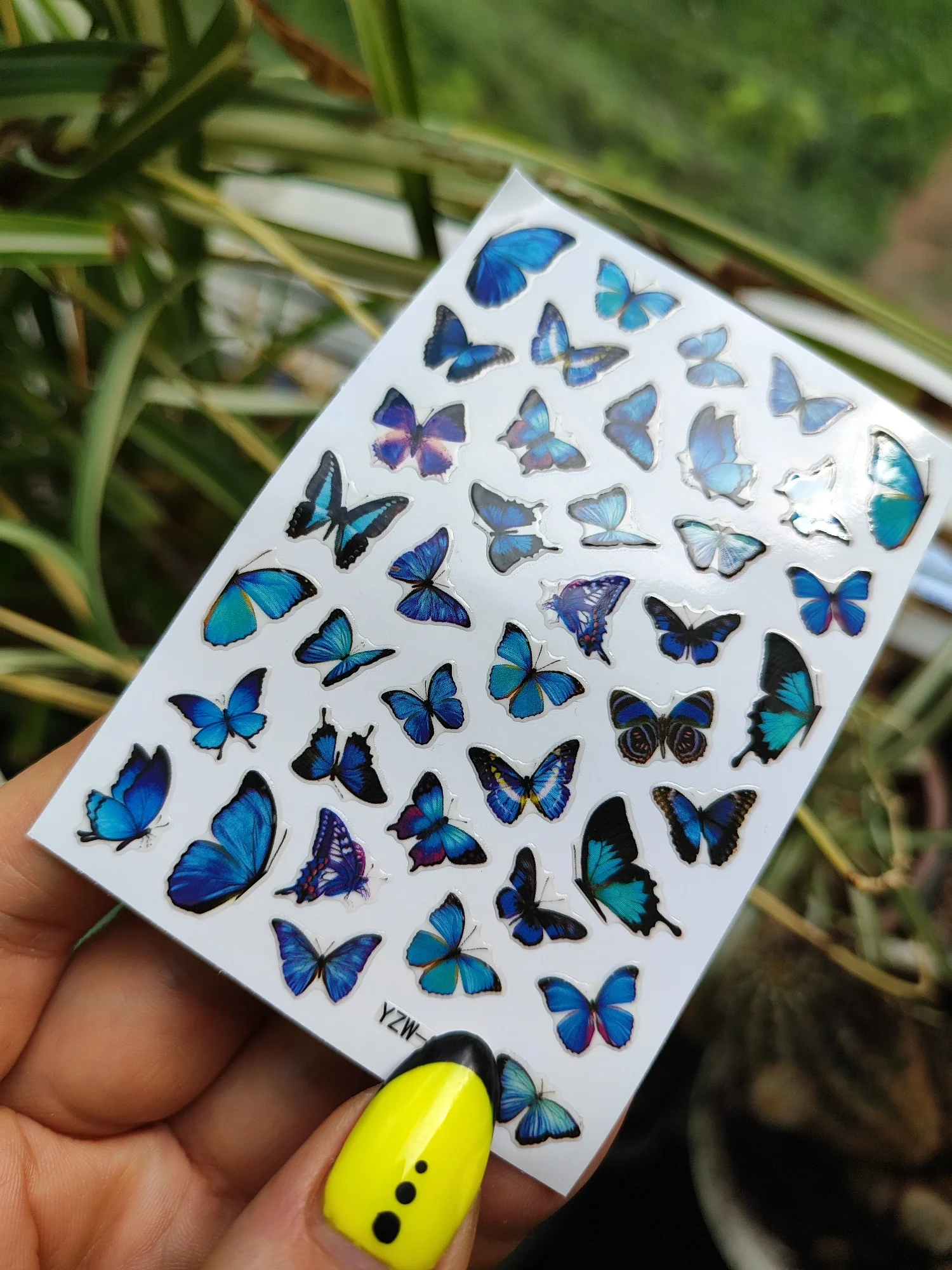 Наклейки для ногтей, 1 шт., голубые, розовые, красочные, с бабочкой...