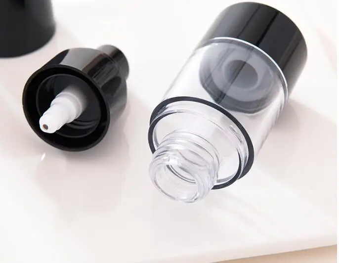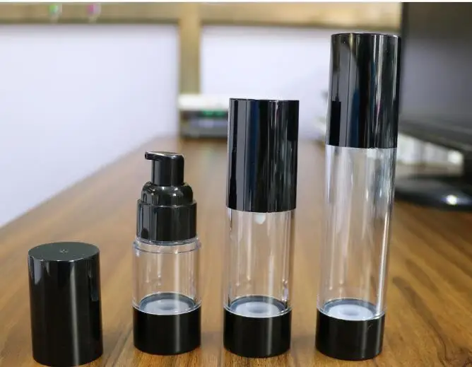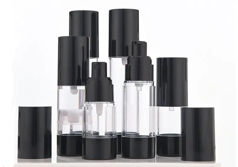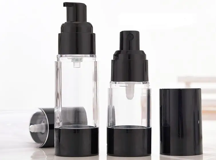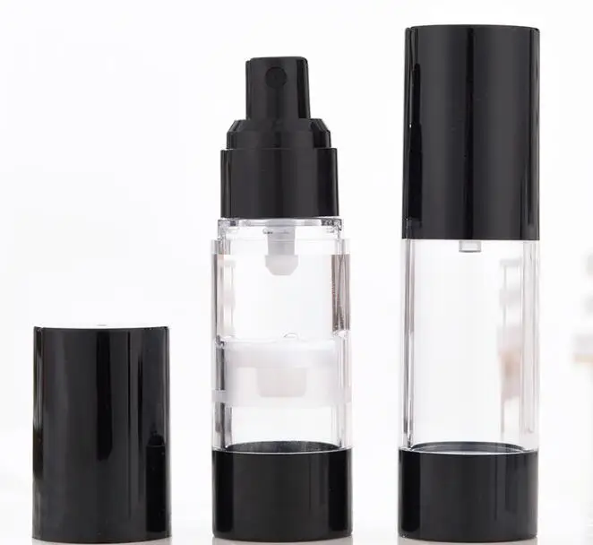 Пластиковая портативная безвоздушная бутылка 10 шт.лот, 15 мл, 30 мл, 50 мл, насос для косметических средств, дорожный пустой контейнер, флакон для духов, черная крышка