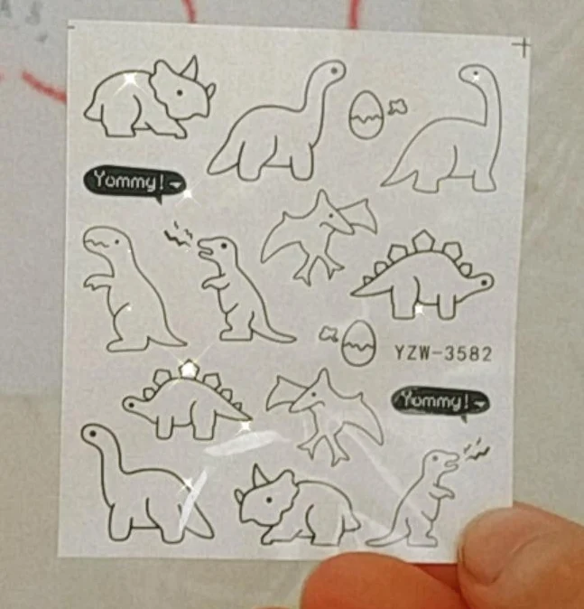 Наклейки слишком большое для ногтей, подойдёт только пару динозавров
