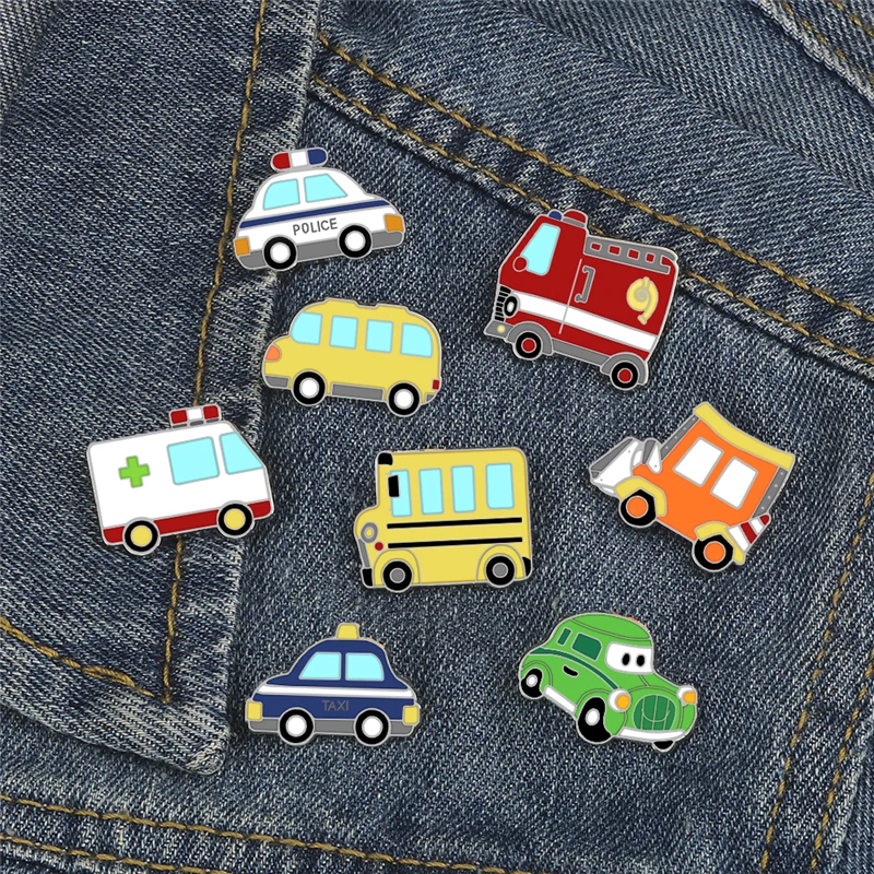 Оригинальные эмалевые броши в виде автомобиля, Мультяшные Милые Броши, Значки для автобуса скорой помощи, пожарной машины, джинсовый лацкан рюкзак, ювелирные украшения для врача
