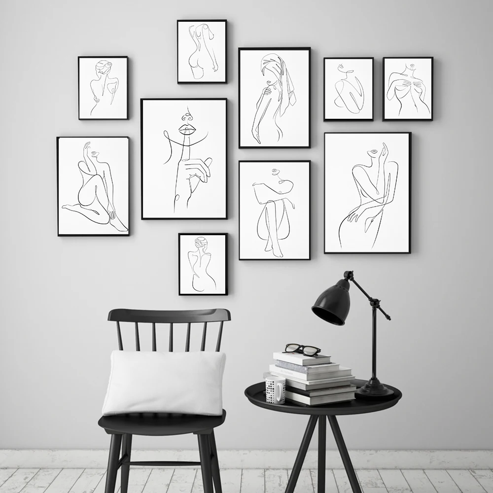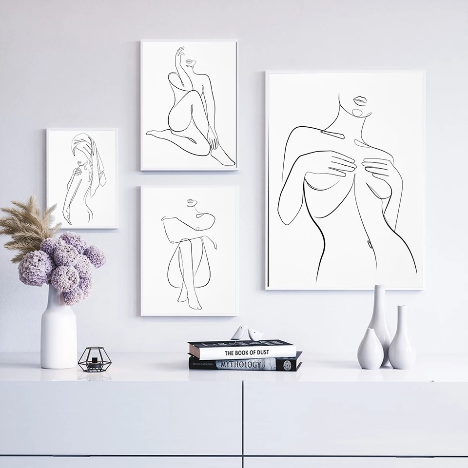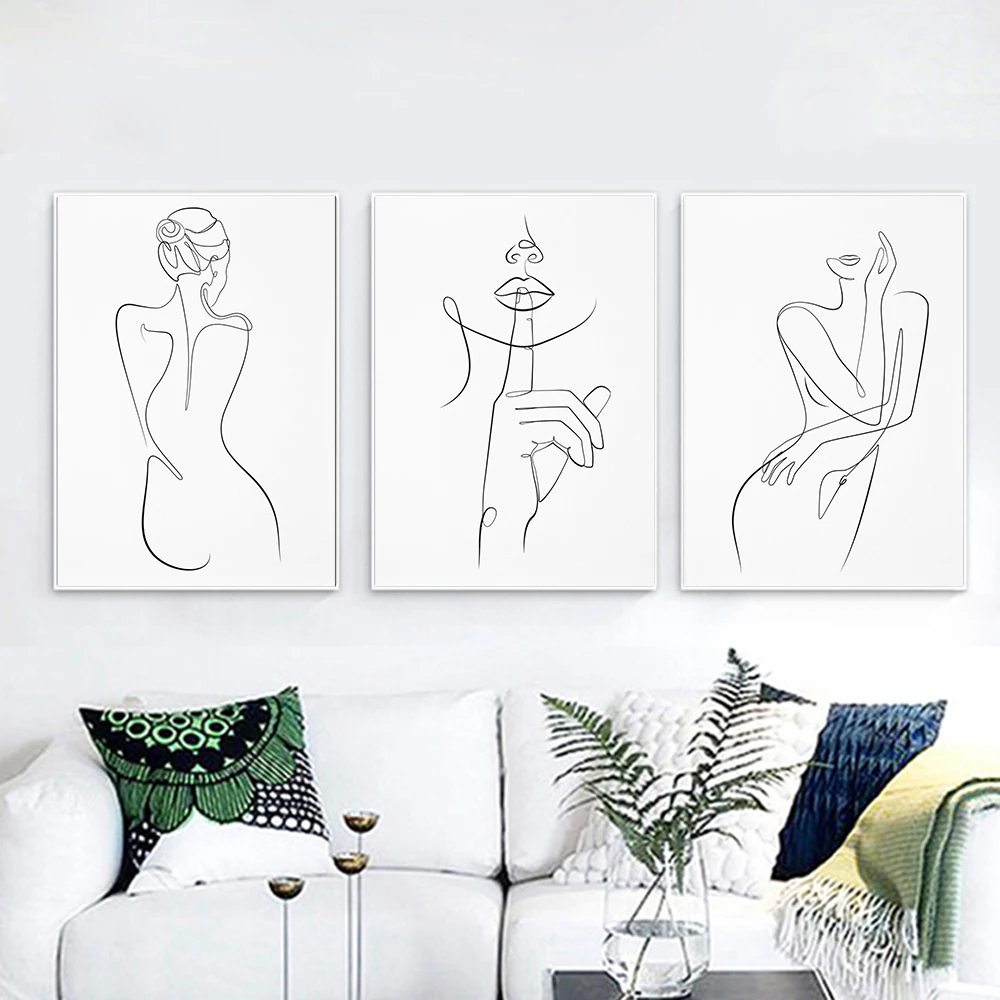 Скандинавские минималистичные фигурки, Линия искусства, сексуальное женское тело, телесный, рисунок, плакаты, принты, украшения для гостиной