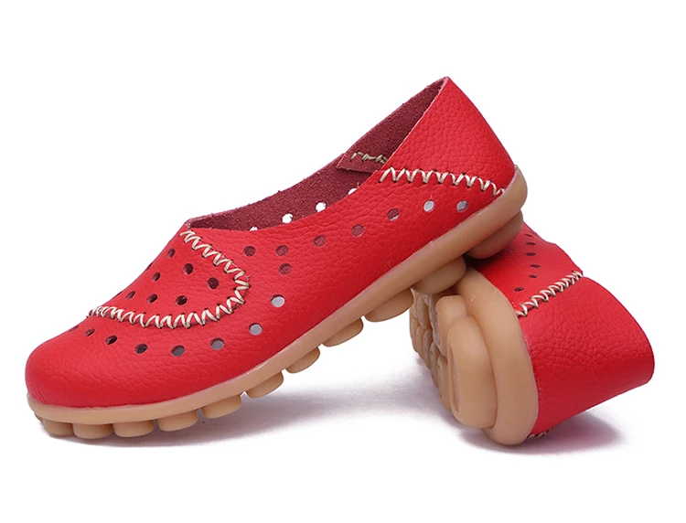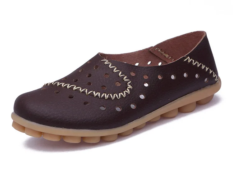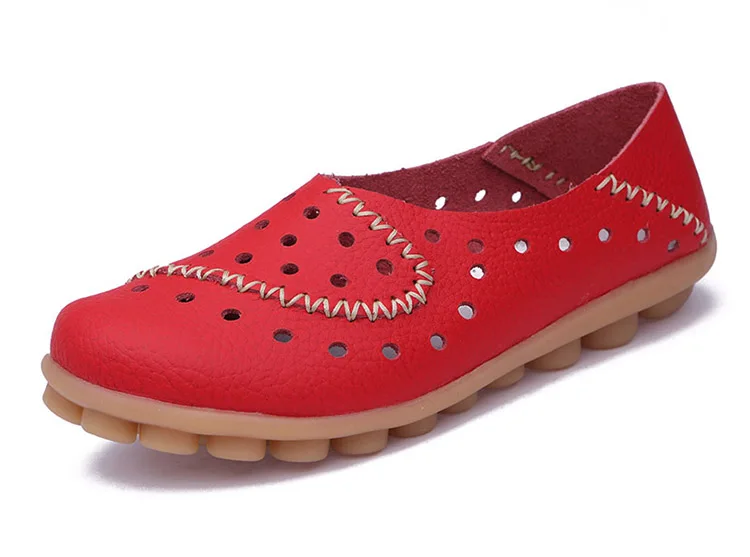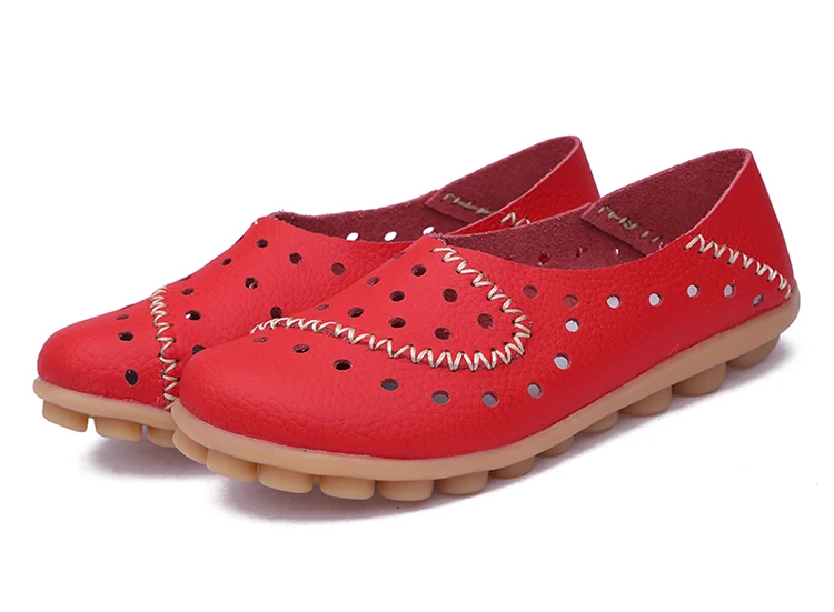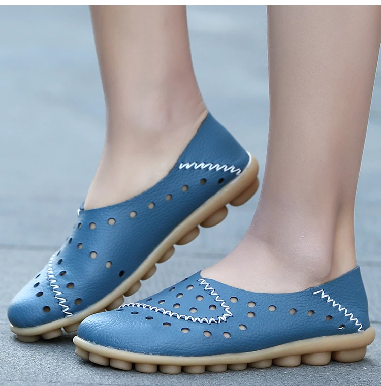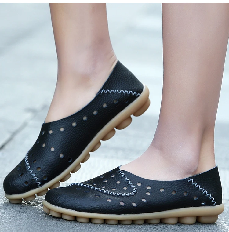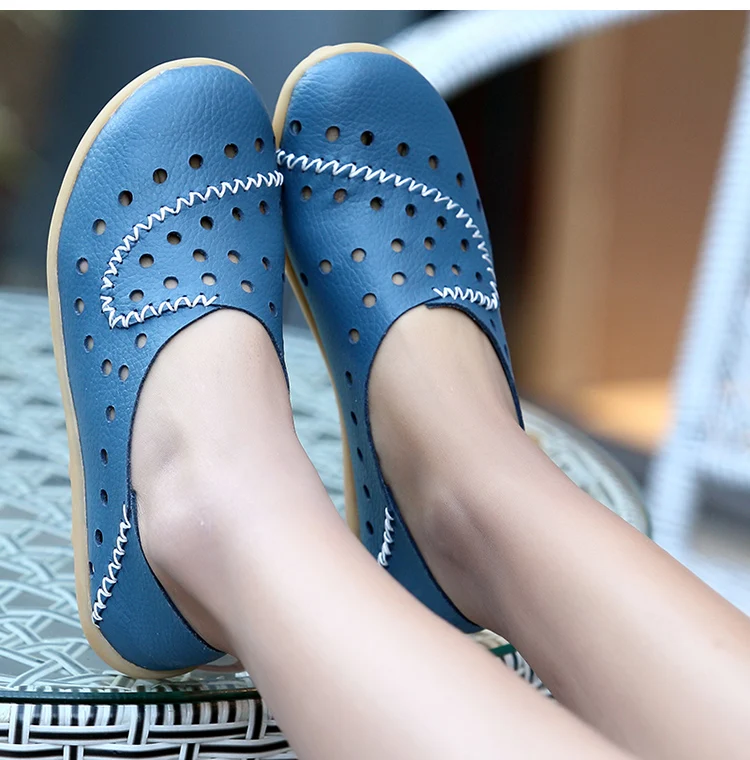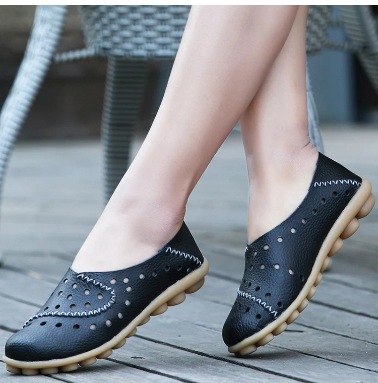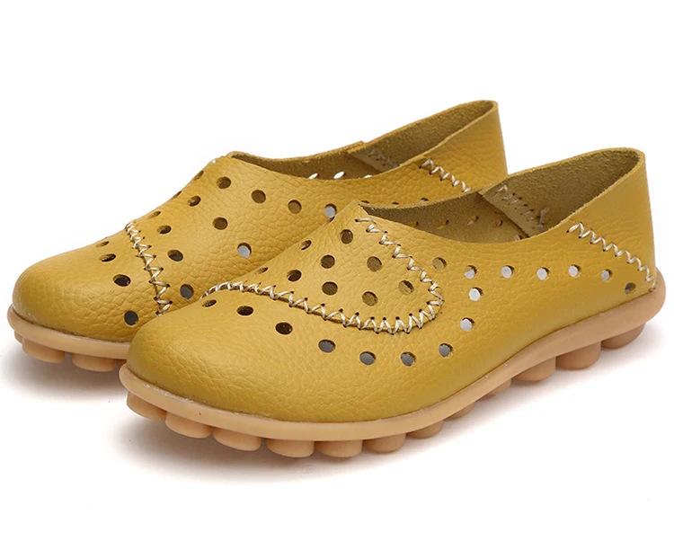 Женская повседневная обувь, Классическая Прошивная летняя обувь для женщин, дышащая удобная женская обувь с маленькими отверстиями, из коровьей кожи, оптовая продажа