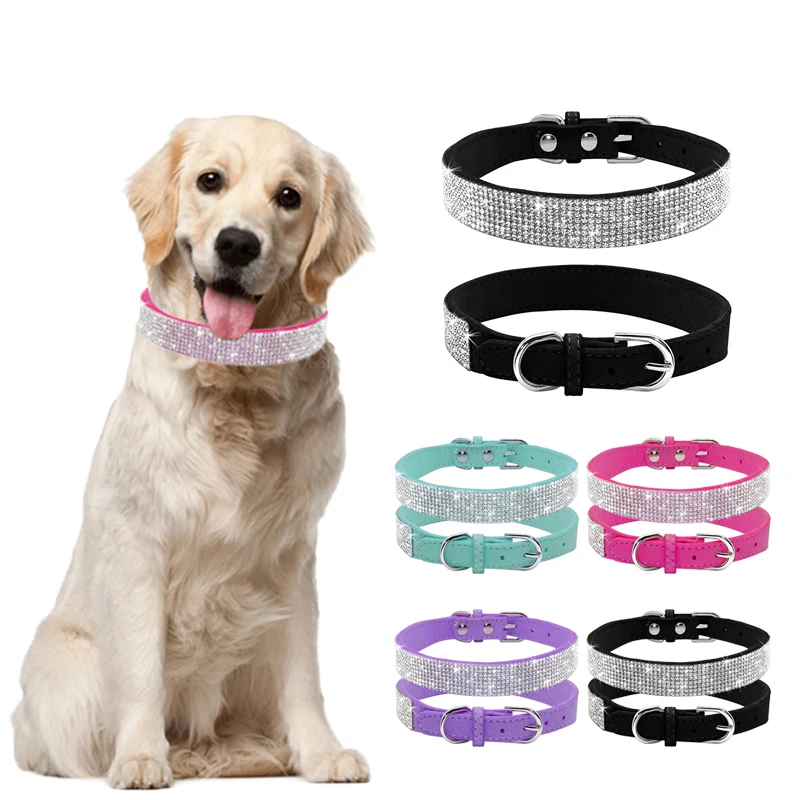 Ошейник для маленьких и средних собак, стразы, регулируемый ошейник...