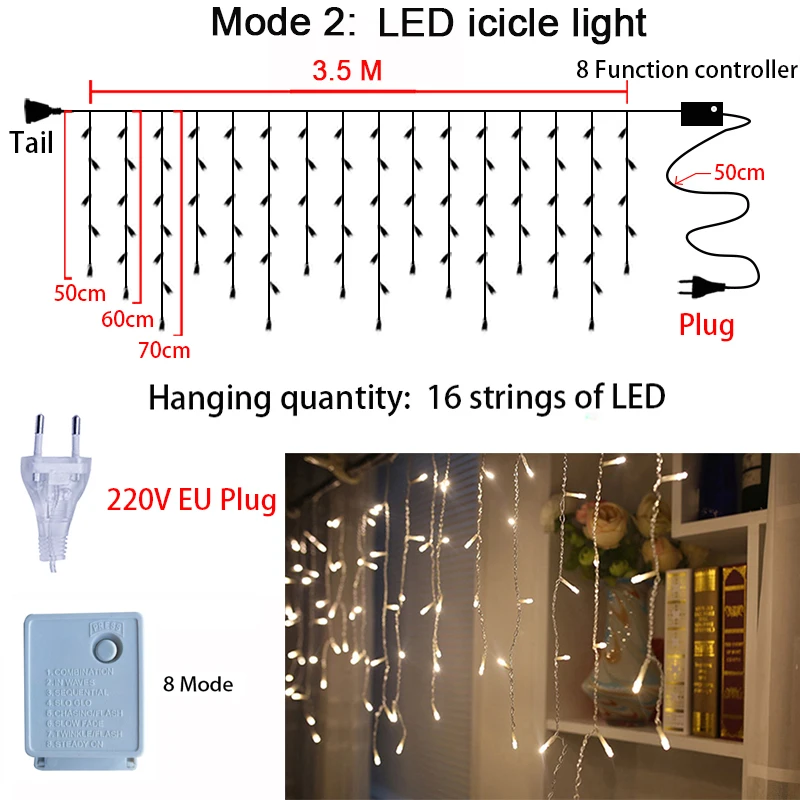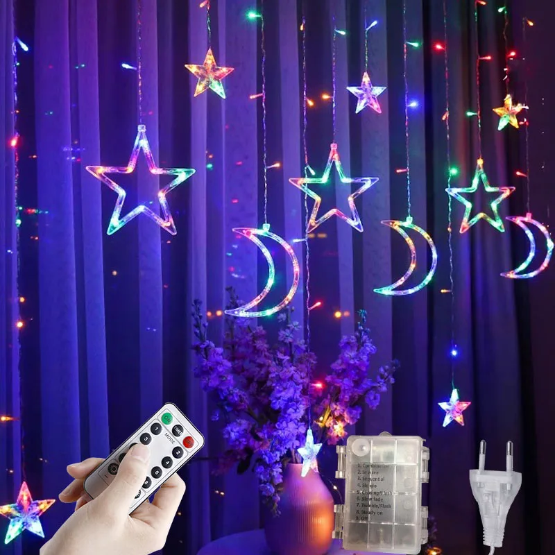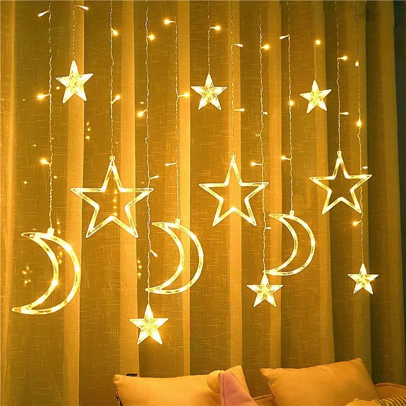 Рамадан, Рождество, свадьба, украшение 3,5 м, звезда, луна, светодиодная гирлянда-занавеска, светящаяся сказочная гирлянда, новый год 2022, Рождество, домашний декор