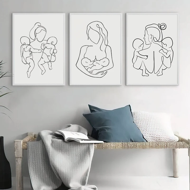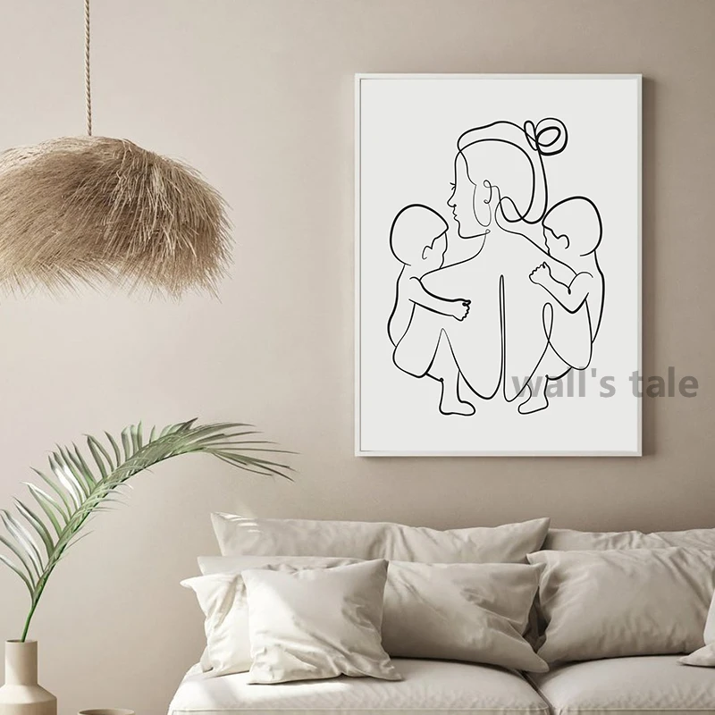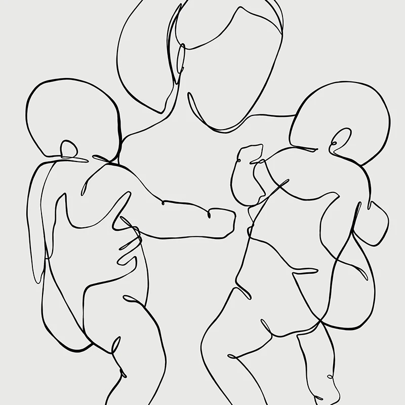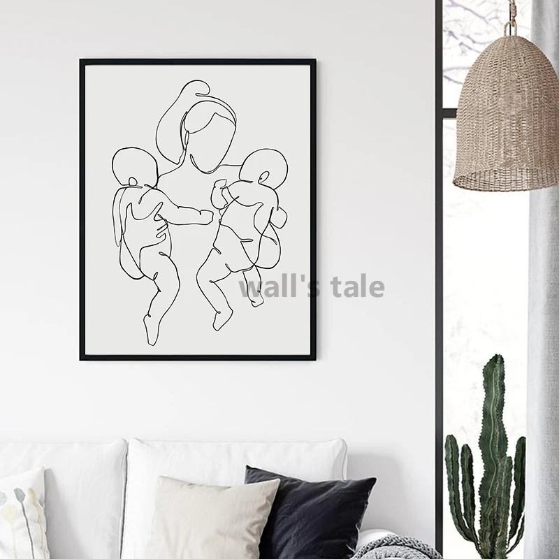 Семейный портрет мама два ребенка Близнецы художественная линия рисунок плакат печатная фотография абстрактная фотография