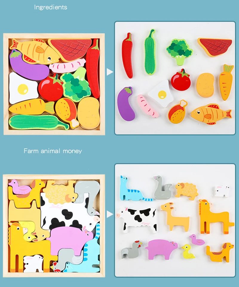 Название продукта: 3D трехмерная головоломка Условия: 100% новый (высокое качество) Материал: дерево Подходящий возраст: >3 года Упаковка: 1 шт. в полиэтиленовом пакете Размер упаковки: 16*16 см (около) Продукты включают: нижнюю тарелку + животных (овощи, фрукты) Функции: координацию рук и глаз, познание, совпадение, головоломка, родитель-ребенок, Рабочий стол