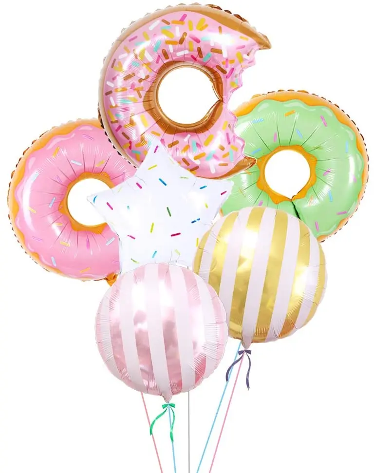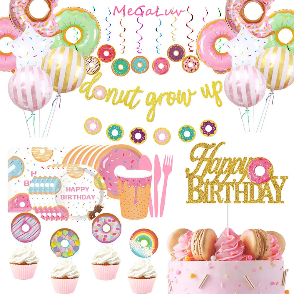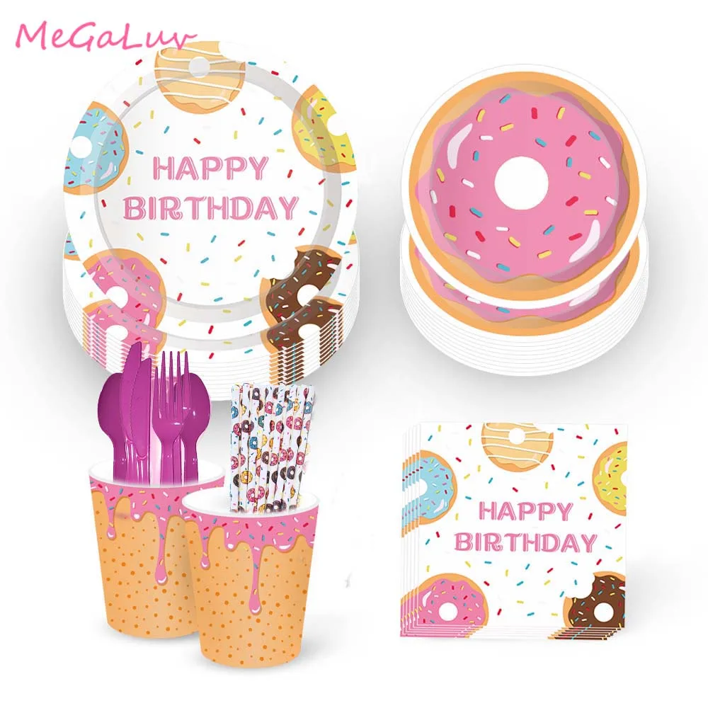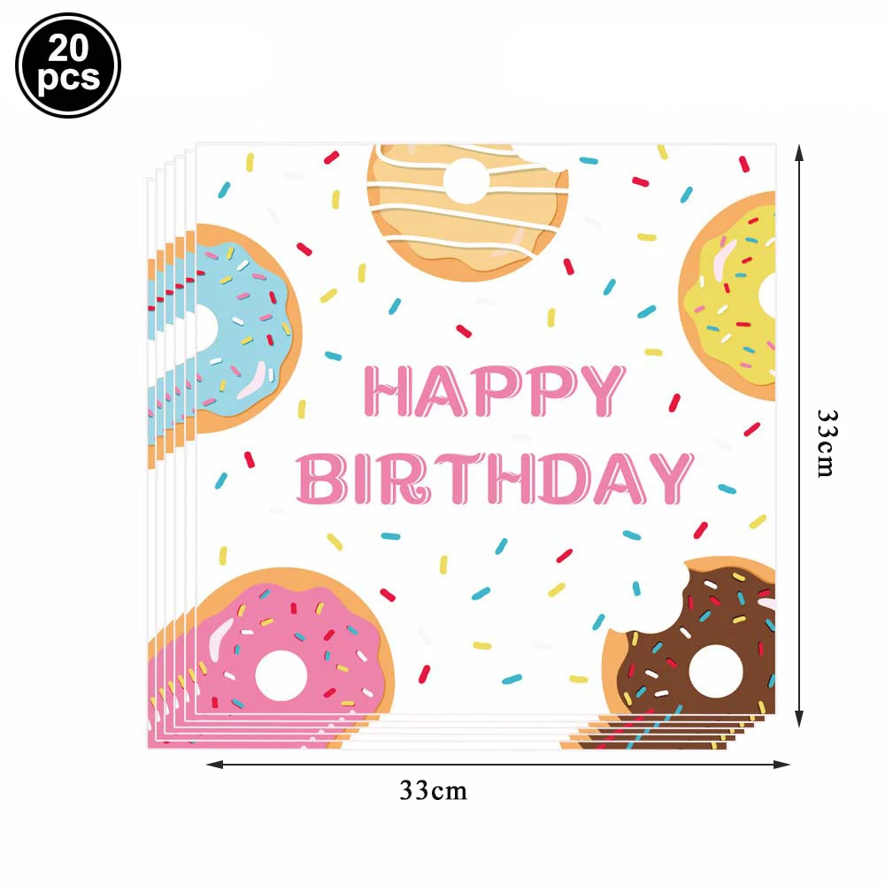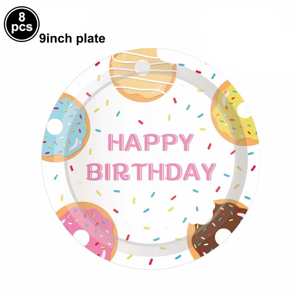 Пончики, вечерние украшения, одноразовая посуда, бумажная салфетка под тарелку кружку, Пончик, фольга, воздушные шары, для маленьких девочек, для дня рождения, вечерние, сувениры