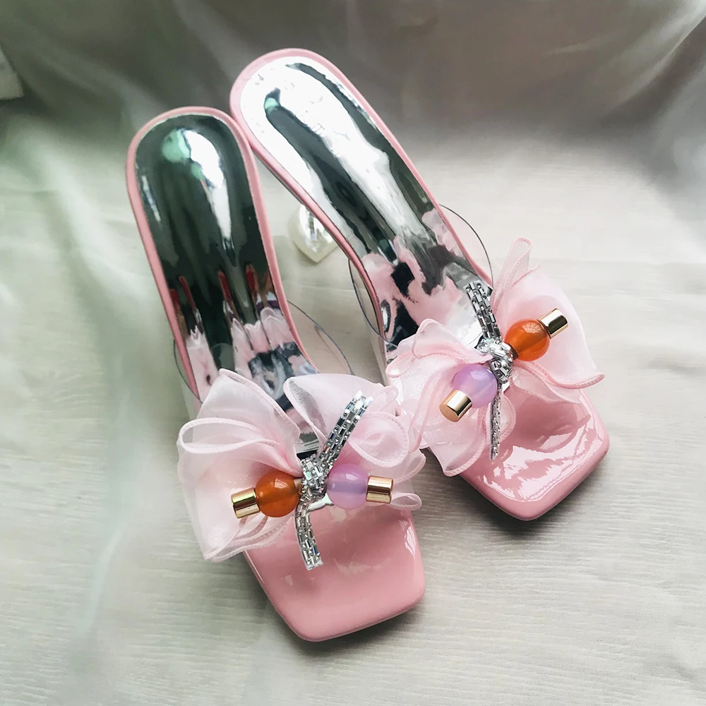 Модные женские туфли на высоком каблуке, женская обувь, сандалии для невесты, милые женские туфли без задника для выпускного вечера, большие размеры