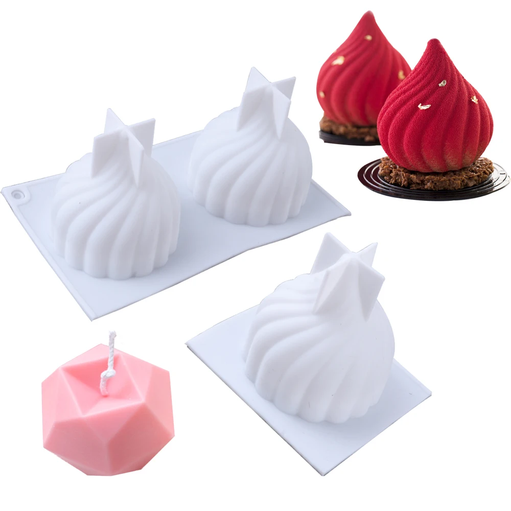 Силиконовая форма в виде 3D-СВЕЧИ, геометрические сосновые конусы, вихревая форма ручной работы, фотоформа для торта, Муса, инструмент для выпечки десертов