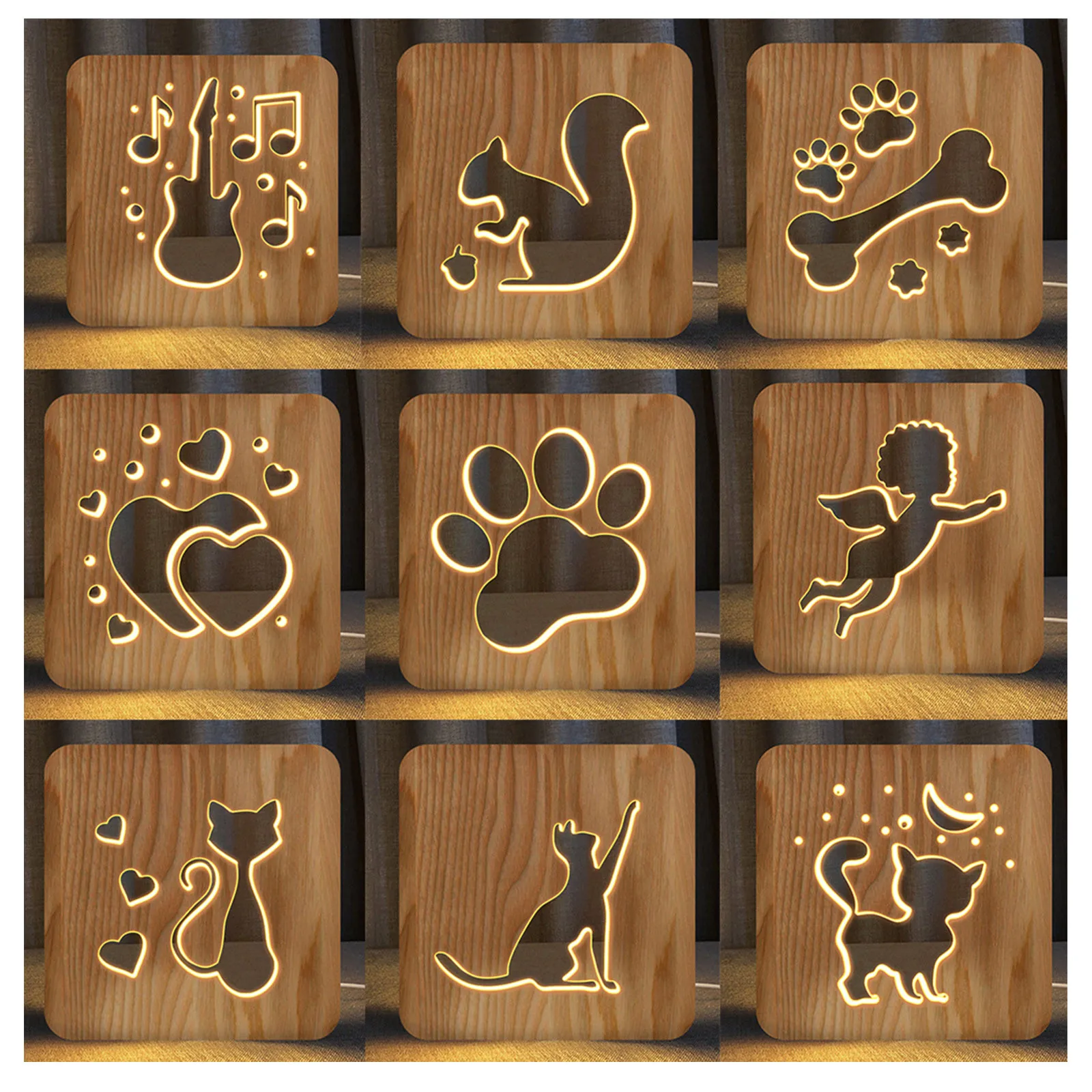 VKTECH светодиодный USB Ночной светильник, деревянный собачий Кот, ...