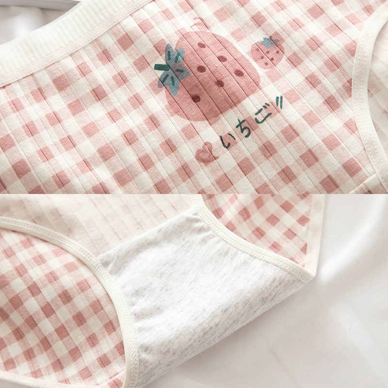 Симпатичное хлопковое нижнее белье для девочек с мультяшными фруктами, дышащие трусики с принтом, женские трусики с клубникой, нижнее белье