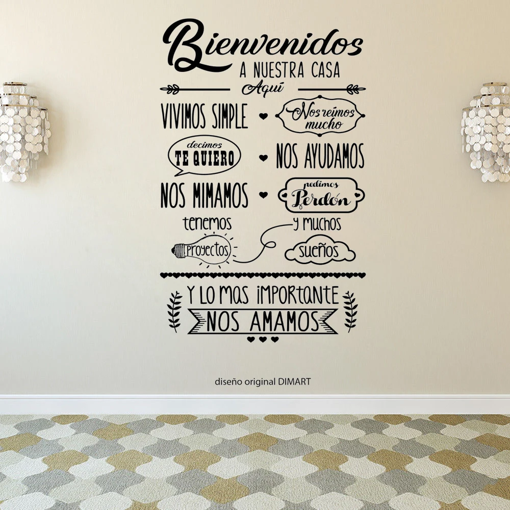 Цитаты на испанском Bienvenidos A Nuestra Casa винил фразы Наклейки на стены Настенный декор Стикеры для гостиной стены декоративные RU2019