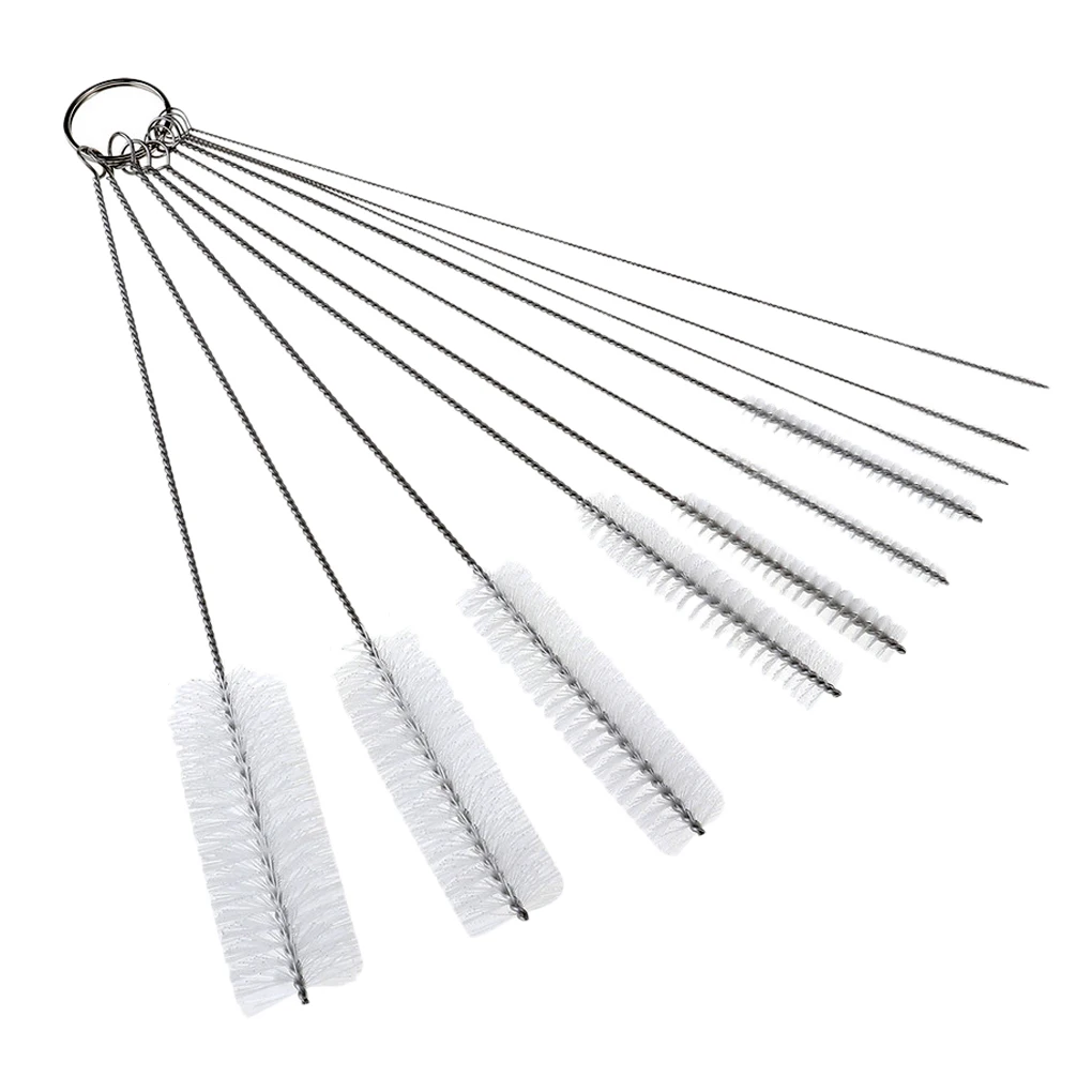 Прочные, но Мягкие Длинные нейлоновые щетинки, прочные и гибкие чистящие средства.Его можно использовать в качестве всасывающего пылесоса для очистки каждого размера трубы, которой вы владеете, не царапая внутреннюю часть всасывающей трубы.Он не только используется для очистки соломинки, но также удобен для очистки труб или цилиндров и других недоступных углов.Попадайте в труднодоступные места, они полезны и практичны.Полезно для всех видов небольших домашних и хобби проектов.Спецификация:Материал: нержавеющая сталь, нейлон.Цвет: белый, черный.Общая длина: 21 см.Диаметр: 2 мм/3 мм/4 мм/5 мм/6 мм/8 мм/12 мм/16 мм/20 мм/24 мм.Примечание:Из–за разных компьютерных разрешений может быть небольшое цветовое искажение.Возможны незначительные погрешности из-за различных ручных измерений.Посылка включает в себя:10 * чистящие щетки.