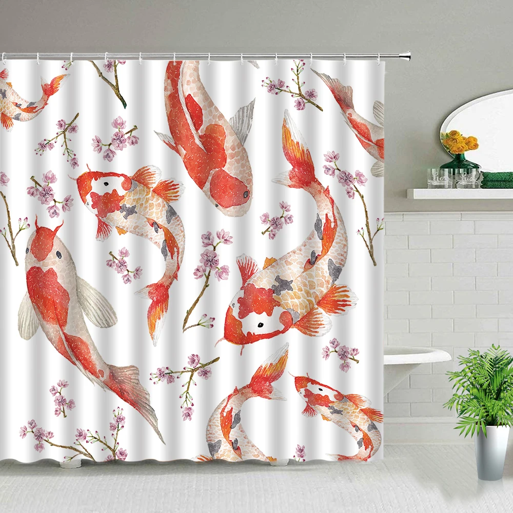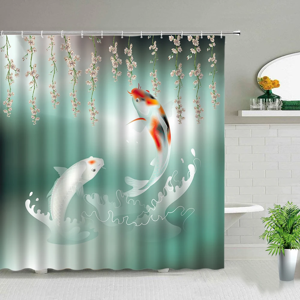 Занавеска для душа в китайском стиле с принтом рыбы кои, занавеска для ванной из водонепроницаемой ткани, занавеска для ванной, задний фон для украшения стен, ткань с крючком
