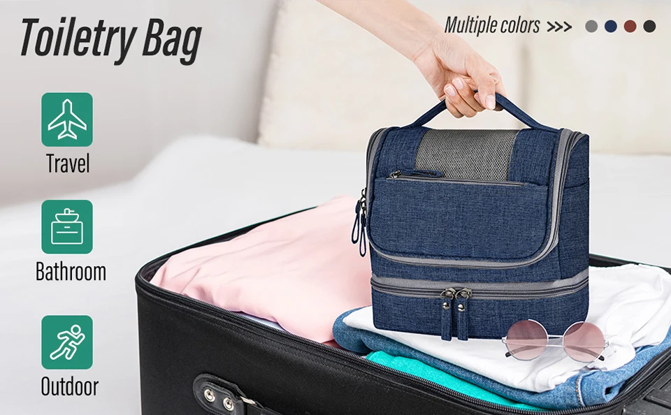 Застежка-молния Большой достаточно для Семья дорожные туалетные принадлежности: Размеры 10,5 ''X 9,2'' X 5 ''. Этот косметический мешок для путешествий с 10 отделениями из сетки, чтобы легко держать все необходимое для путешествий, даже все семейные туалетные принадлежности во время путешествия (макияж, шампунь, мыло, зубная щетка, зубная паста, набор для бритья и многое другое), легко и быстро найти то, что вы хотите, какой стильный дорожный туалетный мешок для женщин и мужчин Уникальный сухой мокрой дизайн, чтобы избежать загрязнений: после профессию опроса более чем 1000 пользователей, мы разработали этот сухой мокрой структуру, которая оказалась очень практичная модель, И вам больше не придется беспокоиться о том, что влажные полотенца будут загрязнены. Вы также можете разместить нижнее белье, конфиденциальность или другие предметы, которые необходимо хранить отдельно здесь. Не пропустите такой мужской подвесной туалетный мешок Качественный водонепроницаемый материал и гладкие молнии для длительного использования: Учитывая, что большая сумка-косметичка часто используется в ванных комнатах, мы тщательно выбираем высококачественную водостойкую полиэфирную ткань 600D для полного предотвращения воды, слез и т. д. Путешествие готово для переноски: Наша женская и мужская сумка для туалетных принадлежностей для путешествий большая, но Компактная и идеально подходит для поездки. Вы можете легко положить его в чемодан или носить с ручкой, и вы можете повесить его на вешалку для полотенец или положить на прилавок в ванную комнату. Ваш идеальный партнер для поездки, отпуска, тренажерного зала, пикника, активного отдыха на открытом воздухе. Конечно, эта косметическая дорожная сумка также является хорошим подарком для ваших друзей или семьи Отличные подарки для женщин и мужчин. 100% удовлетворяющее обслуживание: хотя мы очень требовательны к качеству, мы все еще не можем гарантировать 100% совершенство. Если вы получили Бракованные дорожные сумки для туалетных принадлежностей, пожалуйста, немедленно свяжитесь с нами, чтобы получить бесплатную замену или полный возврат средств