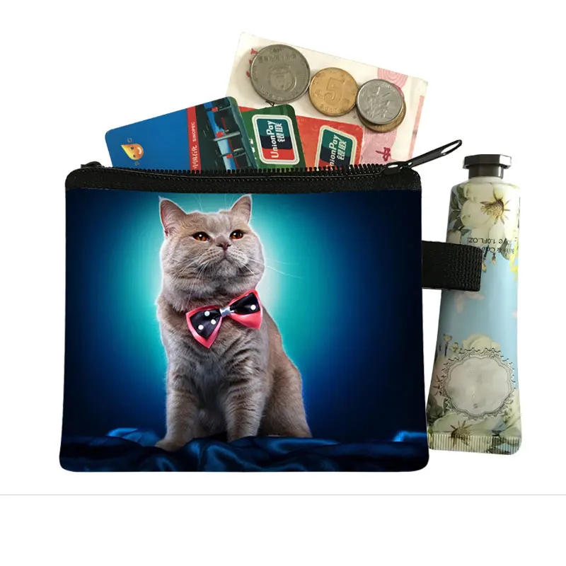 Новые милые кошельки для монет с принтом кошки, мини-кошелек для ме...