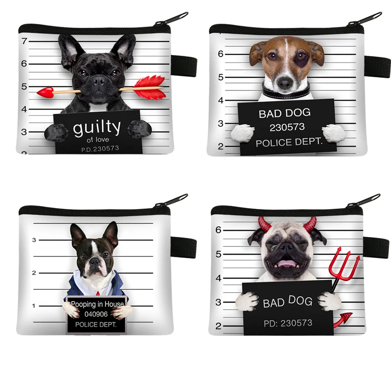 Забавный плохой кошелек с собакой, милый Бульдог, мопса, кошельки для монет, женские, с 3D принтом, с животными, модные, милые, маленькие, на молнии, сумка для женщин